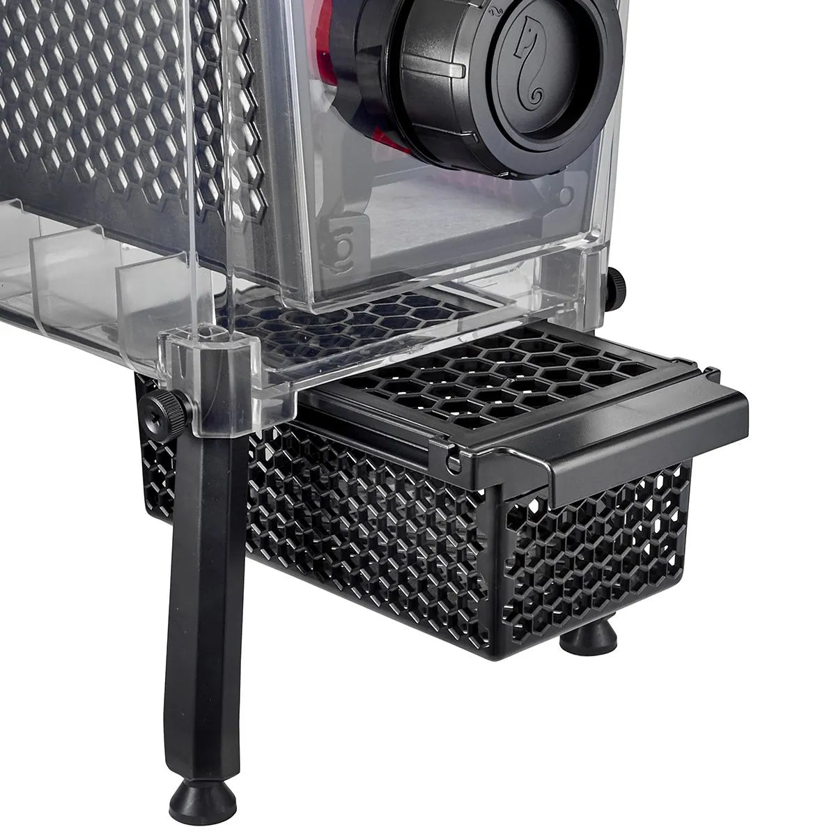 The ReefMat comes fully assembled, ready to use straight out of the box. For ease of operation, it is designed to hang on the front wall of the sump; however, it also has optional legs for a freestanding installation.